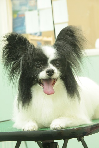 今回は、チャームポイントだった長い耳の毛を飼い主さんの要望で短くカット。
